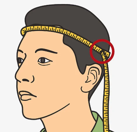 The image on the right illustrates how to measure head circumference. If your head circumference is more than 65 cm, please contact us.